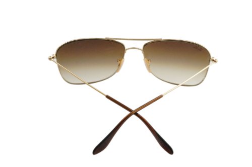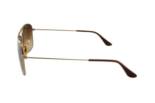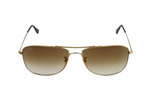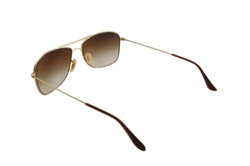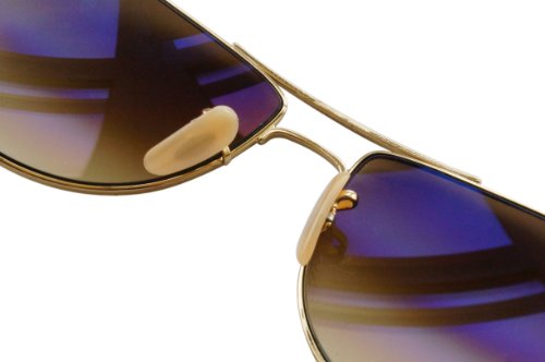 Simple, yet distinguished. This gold, pilot style by Ray-Ban features brown, gradient lenses. Providing 100% UV protection, adjustable goose neck silicon nose pads, and a double-brow bar across the bridge, this look is a great fit for nearly all face shape and sizes. The Ray-Ban logo appears on both the lenses and temples.