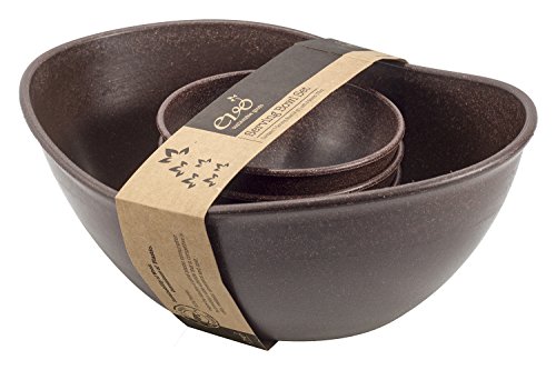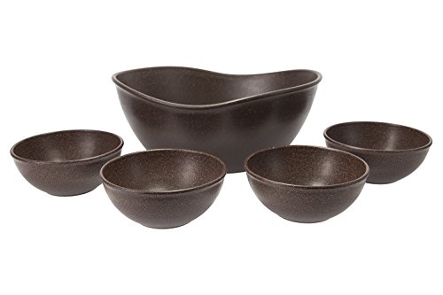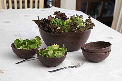This set of wpc (wood plastic composite) bowls are a sustainable and innovative way to serve friends and family. Contains one large, deep, and versatile serving bowl, great for salads, and four durable individual 16oz bowls. As always, the BPA free products are dishwasher and microwave safe.Feature