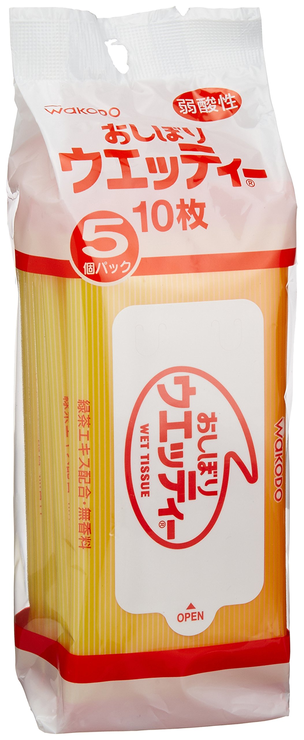 "Wet towel 10 pieces * 5 packs" is a soft, clean wet type tissue with weak acidity, no fragrance that is gentle to your skin, with green tea extract mixed.