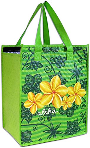 Island Impressions Tote Bag Insulated Aloha Plumeria Medium Green One Size