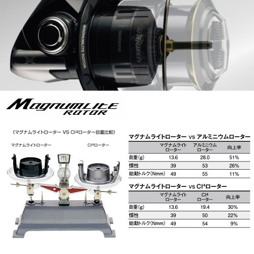 신카본 소재「CI4+」채용 매그넘 라이트 로터 탑재.경량화와 리 링 초기가 가벼운 회전 첫 시작을 실현.