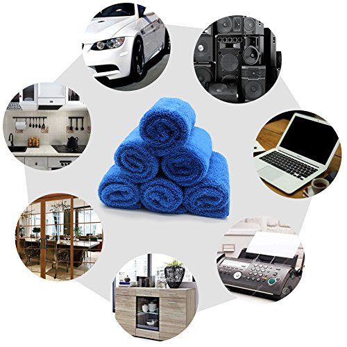 Microfiber Cleaning Cloth set of 6 Bulk - Duster Rag Sponge for Car Wash Auto Care Thick Large for Glasses Kitchen Dish (Dark Blue)