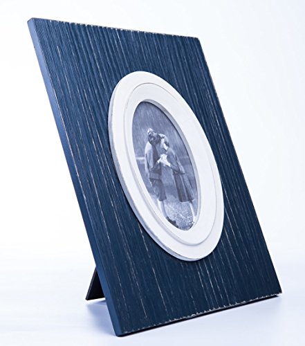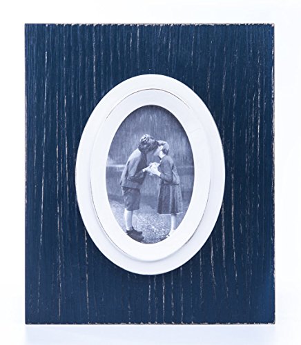 4x6 Blue-White Wood Picture Frame with Glass Front - Weathering Wood Finished - Table Desk Top or Wall Hanging