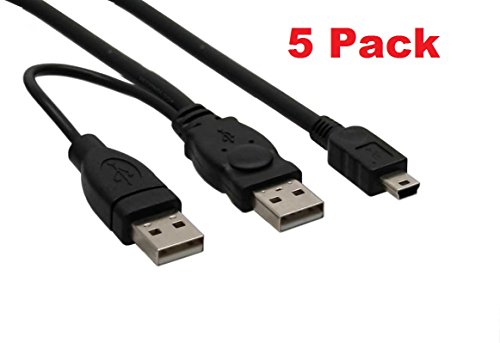 (5 Pack) (75cm - 2 Foot - 0.75M) USB 2.0 Dual Power Y Shape 2 X Type a to Mini B Premium Quality Cable for External Hard Drives/camera/card Readers