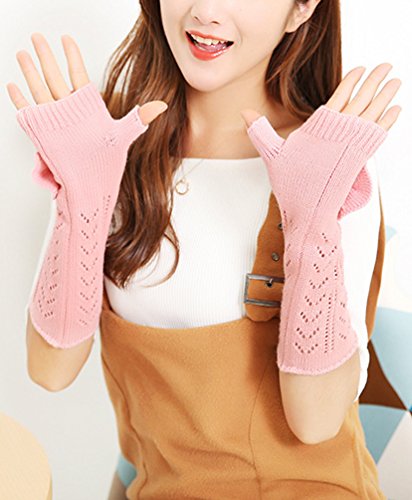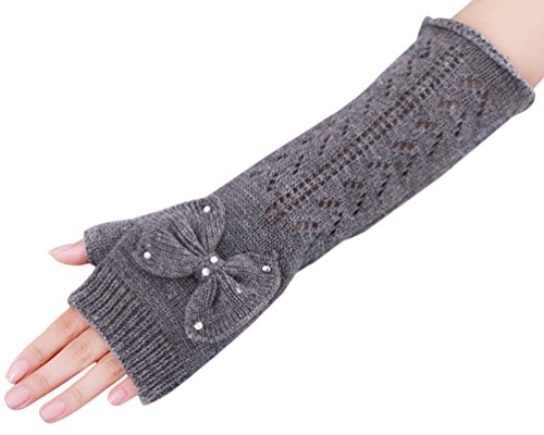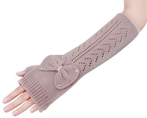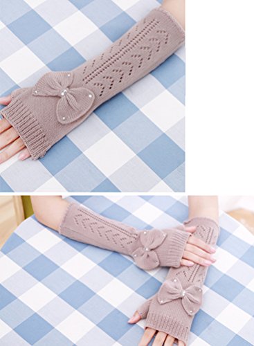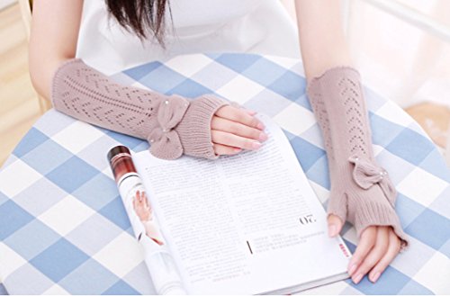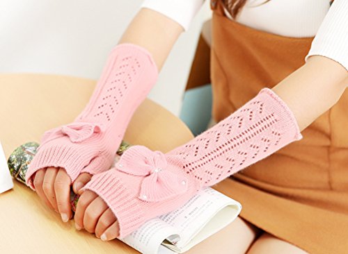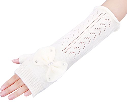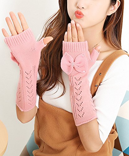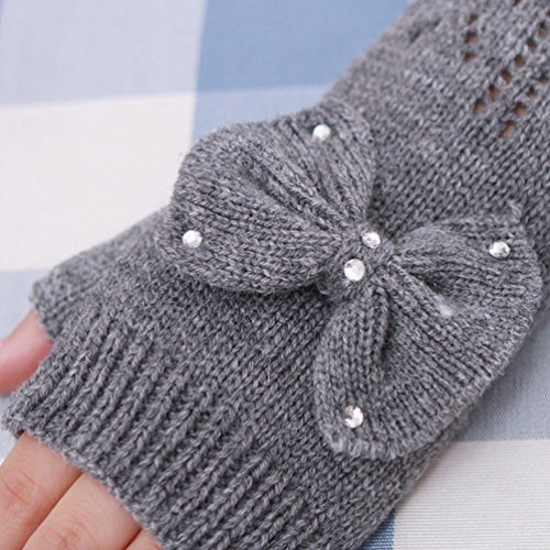(BecyWell)/Accessories/Cold Weather Accessories/DIRECT FROM USA/BecyWell Women Girls Winter Warm Bowknot Knit Fingerless Half Mittens Gloves