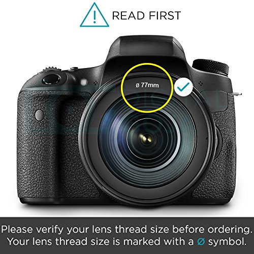 NOTE: This Altura Photo filter set is compatible with all 77mm lenses. Your camera's lens thread size will be marked somewhere on the lens barrel or printed underneath your lens cap. This number is always preceded by a "Ø" (diameter) symbol. For example: Ø77 = 77mm lens thread size.
