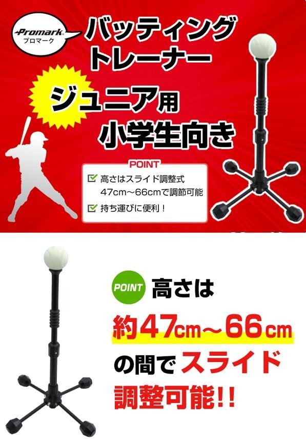 高さは約47~66cmで調整可。持ち運びに便利なバッティングトレーナーです。