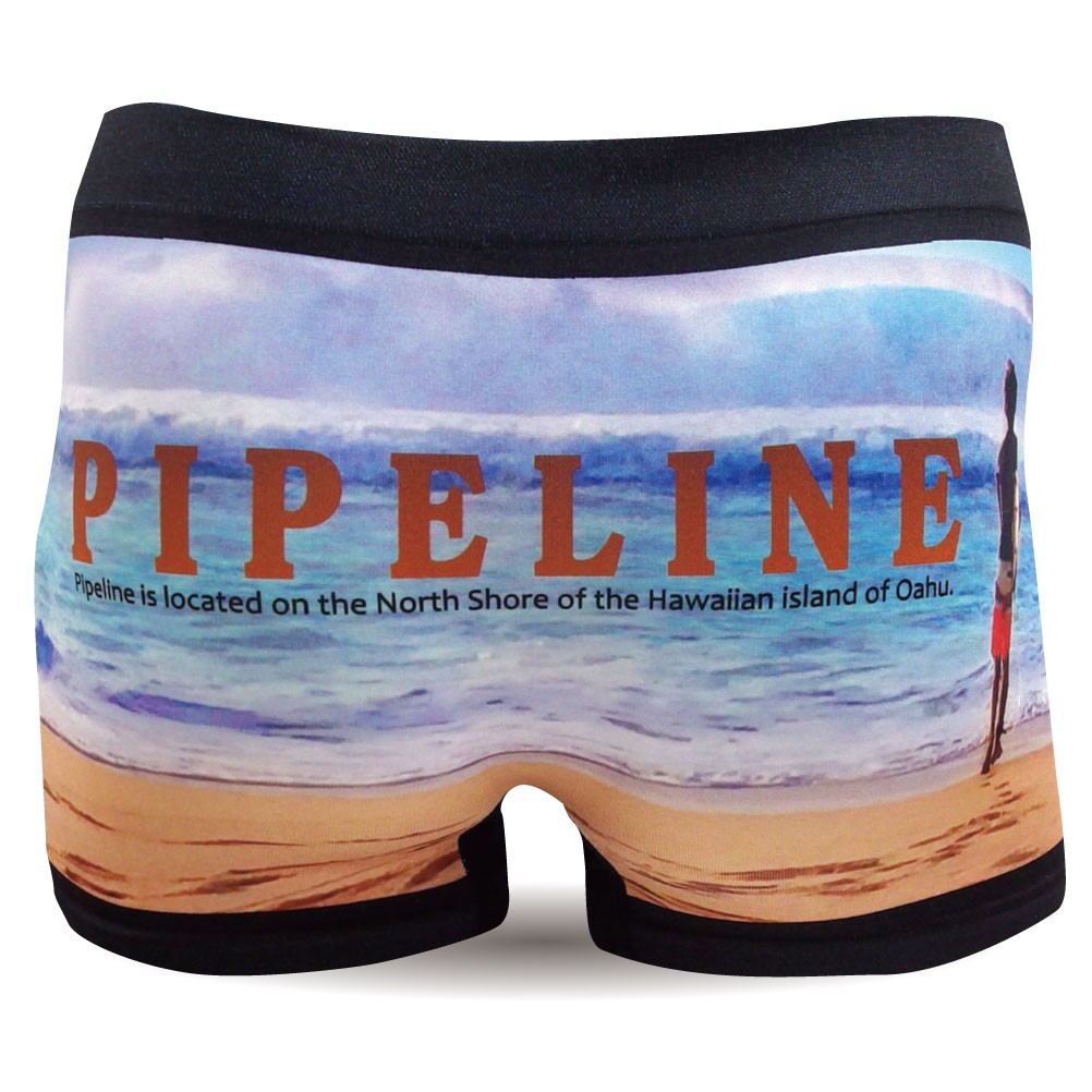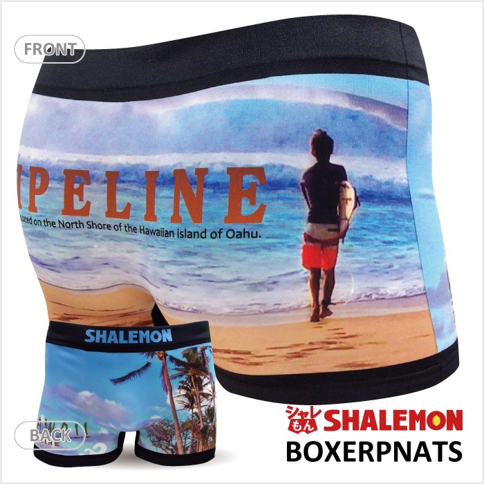 ハワイ ノースショアの有名な看板を撮影してデザインした立体成型シームレスのカッコいいボクサーパンツです。まるで水着のごとく派手でカッコいいので、サーフィン後の、海での着替えにも重宝します。