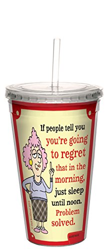 Tree-Free Greetings 16-Ounce Double-Walled Cool Cup with Reusable Straw, Aunty Acid Sleep Until Noon (CC98649)