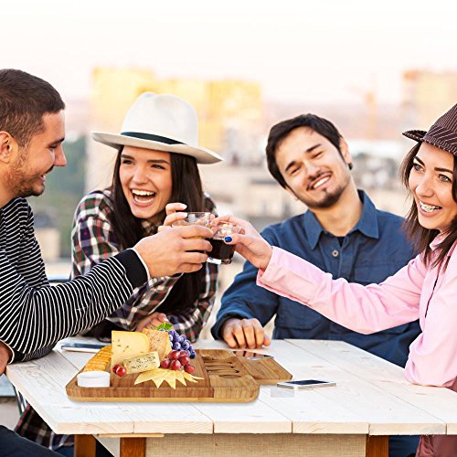 GROOVED SERVING RIM: The rectangle wooden board kit holds a huge assortment food like crackers, chips, bread, fruit or wine around the center of the board and can be used in any travel to the beach for a picnic. Impress your guests with fantastic presentation of their favorite snacks and charcuterie all ready and accessible.