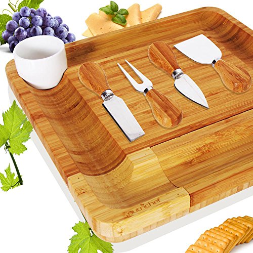 NATURAL BAMBOO MATERIAL: Flat cheese board plate is large enough to feed a group of 4-6 and is resistant to staining. Easy to wipe down food and use for the next party. Impress your guests with a presentation of their favorite snacks and charcuterie!