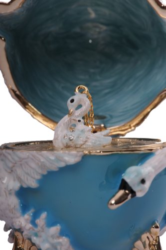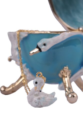 - Title : Turquoise swan Faberge Easter Egg with pedant inside