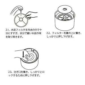 ご注意フィルターのお手入れの際には、洗剤を使用しないで、水で表面の汚れを洗い流してください。フィルター交換時には、清潔を保つために必ず給水器本体各部を洗浄してください。