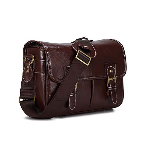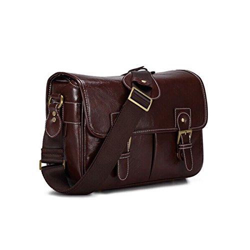 DSLR Camera Bag Waterproof PU Leather Travel Bag Shoulder Bag for Canon Sony Nikon Canon Olympus DSLR Camera (Coffee)