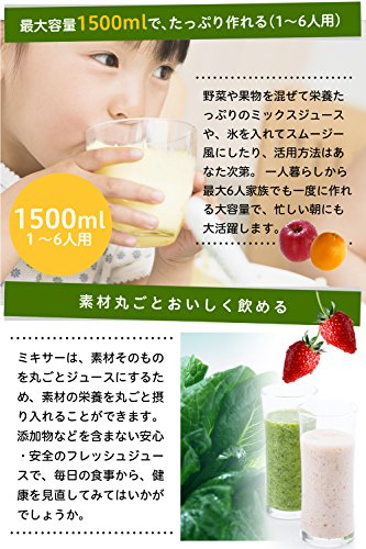 ◆使い勝手の良いガラス製ボトル1500mlタイプ。1~6人分のジュースも一度に作れる1500mlタイプ。朝の忙しい時間も手軽に使えます。また、従来機種(800mlタイプ/SJM-180)と比べてより多くの材料を一度に調理できます。