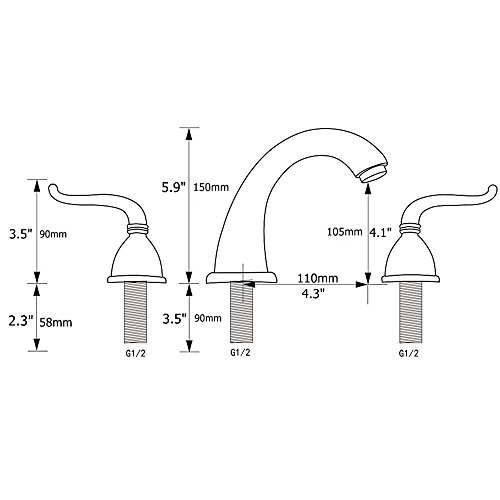 VESLA HOME Vintage Two Handle High Arc Widespread Bathroom Faucet, Roman Tub Faucets, Imitation Bronze