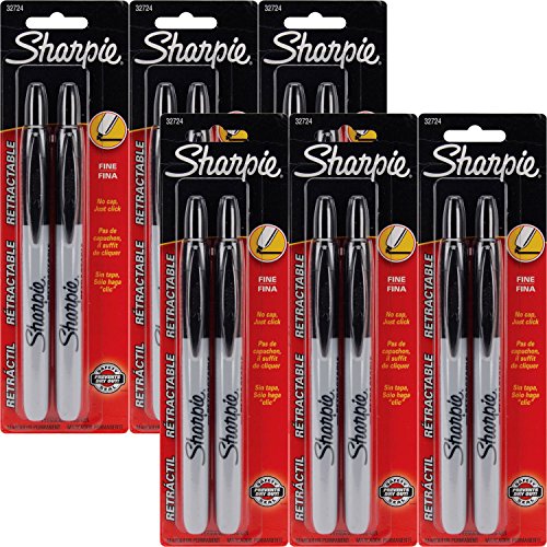 Sharpie Retractable Fine Point Permanent Black Markers, [32724PP] 2 Count (Pack of 6) 12 Markers Total