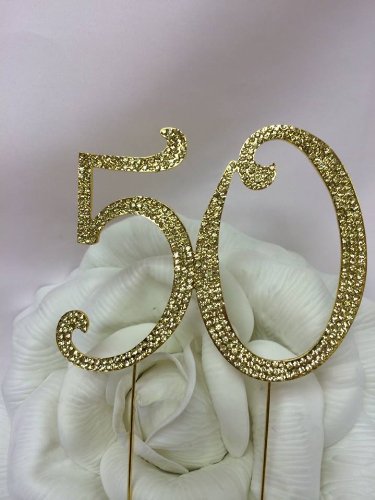 - Gold Rhinestone Crystal Covered 50th 50 Anniversary Birthday Number Cake Topper
