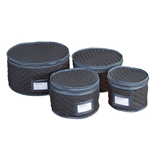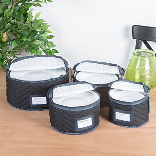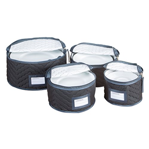 Richards Homewares Micro Fiber Deluxe Plate Case, Set of 4- Black With Charcoal Trim, 1-Pack