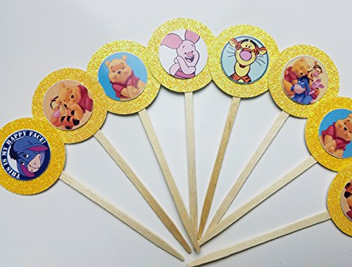 8 Winnie the Pooh Cupcake Picks Birthday Party Dessert Tigger Eeyore Piglet Decor Party Supplies