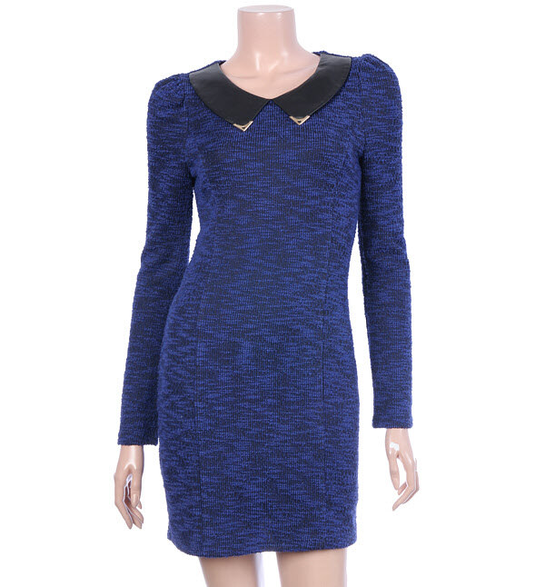 EGOIST, 컬러가 믹스된 소재와 배색 카라의 조화로 한층 세련스러우머 포멀한 디자인을 연출하는 미니멀한 원피스입니다