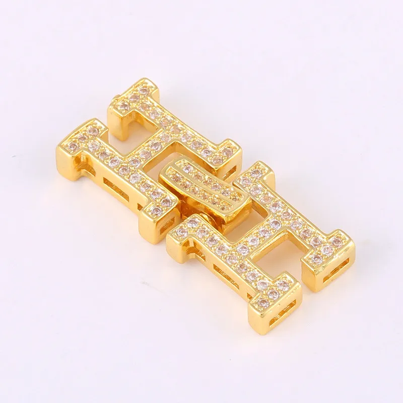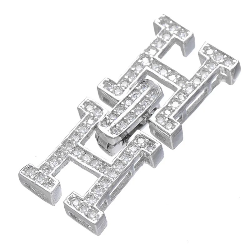 Double Letter H Clasps Material :copper zircon