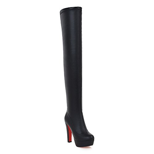 (BalaMasa)/Women's/Boots/DIRECT FROM USA/BalaMasa Womens High-Heel Zipper Solid Above-The-Knee Urethane Boots ABL09671