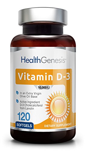-. Binding : Health and Beauty -. Brand : Health Genesis -. EAN : 0849440003611 -. Feature : Manufactured to the Highest Quality Available / Satisfaction Ensured / Great Gift Idea -. Label : Health Genesis -. LegalDisclaimer : This information is intended for your general knowledge only and is not substitute for professional medical advice or treatment for specific medical conditions. This information is not intended to diagnose, treat, cure or prevent any disease. Always seek the advice of your qualified physician or other health care provider with any questions you may have regarding a medical condition. Keep out of reach of children. -. Manufacturer : Health Genesis -. MPN : 0849440003611 -. NumberOfItems : 1 -. PackageQuantity : 1 -. PartNumber : 0849440003611 -. ProductGroup : Health and Beauty -. ProductTypeName : HEALTH_PERSONAL_CARE -. Publisher : Health Genesis -. Studio : Health Genesis -. Title : Vitamin D3 10000 IU 120 Softgels - High-Potency | Non-GMO | Soy-Free | In Extra Virgin Olive Oil | Strong Bones | Immune Health | Support for K-2 -. UPC : 849440003611