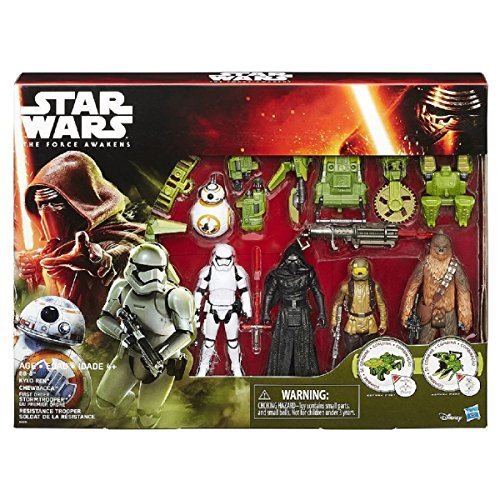 -. Binding : Toy -. Brand : Star Wars -. EAN : 0630509382873 -. Feature : Combine weapons from each figure for new creations / Collect and battle with other Star Wars figures and vehicles / WHAT'S INCLUDED: 5 figures, 11 total accessories, 3 projectiles / Age: 5 years and up / Model: B4016 -. IsAdultProduct : 0 -. Label : Hasbro -. Manufacturer : Hasbro -. Model : B4016 -. MPN : B4016 -. PackageQuantity : 1 -. PartNumber : B4016 -. ProductGroup : Toy -. ProductTypeName : TOYS_AND_GAMES -. Publisher : Hasbro -. Studio : Hasbro -. Title : Star Wars Episode VII: The Force Awakens 3.75 inch Forest Mission figures 5-pack set -. UPC : 630509382873