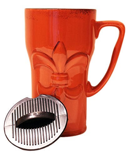 Fleur de Lis Collection, Hand-Painted Burnt Orange Ceramic Travel Mug 1-Piece 6-1/4"H, 82090OR By ACK
