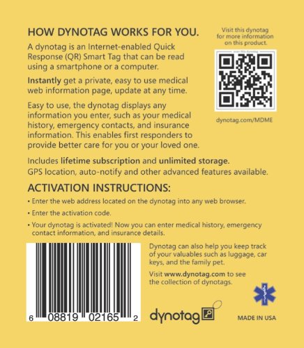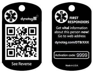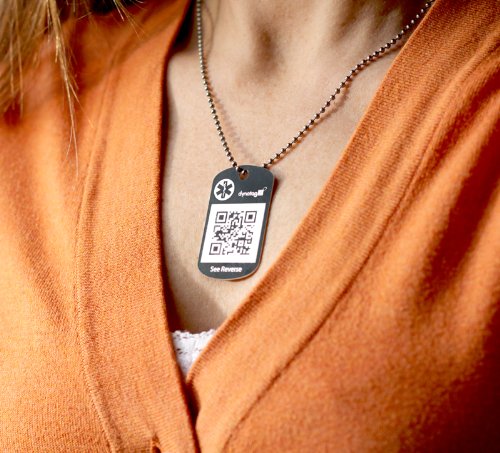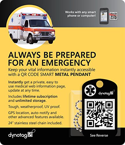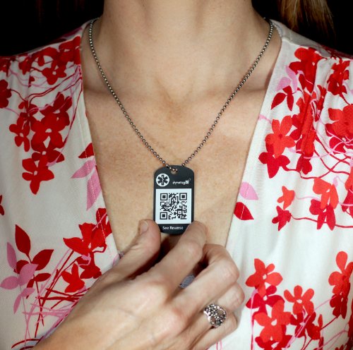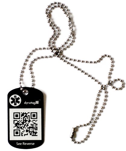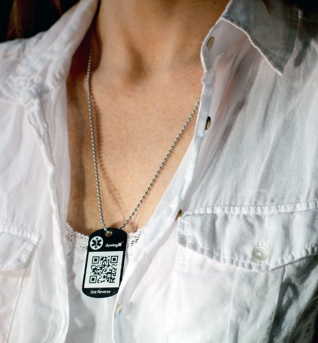 Dynotag Web/GPS Enabled QR Smart Military Style Medical/Emergency Info. Metal Pendant & Chain Set