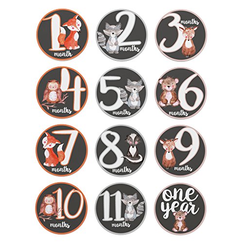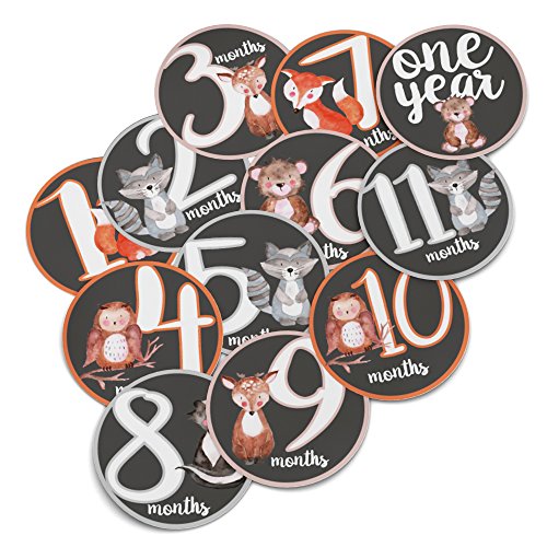 Fawn Hill Co Monthly Baby Stickers for Onesie - Milestone Month Sticker - Gender Neutral - Woodland Forest Animals