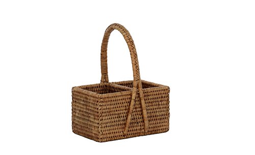 Artifacts Trading Company Rattan 2-Section Cutlery/Napkin Holder with Handle, 12" L x 6" W x 5" H