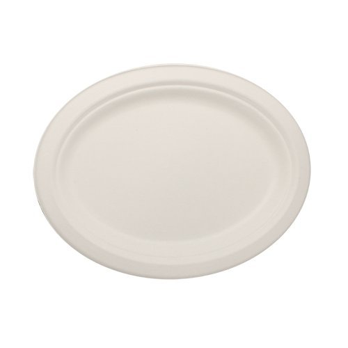 (B-KIND)/Household Supplies/Paper Plastic/DIRECT FROM USA/Durable Eco-Friendly 10" x 8" Bagasse Plates(Oval) - Pack of 50 White Plates. Microwave Safe, C...