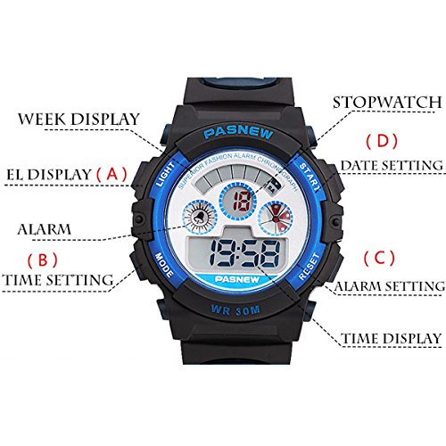 Watches Multi : Digital display, Waterproof, Alarm Clock, Stopwatch, Date, Week and Calendar, EL Back Light; Perfect for Sports and Daily Wear.