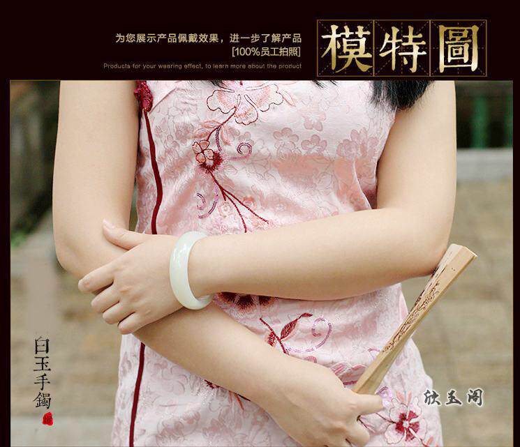 在选戴玉手镯时,要能将玉镯戴入4个长手指(即大拇指除外)并至"虎口"处,感觉稍紧一些,然后将玉镯取下,测量一下内径,例如刚好是55毫米,那么,这个尺寸就是适合你的圈口了。有些人喜欢戴得稍松一点,选择时,就选择圈口大1~2毫米,这样便可以较容易地戴上取下了。也有一些人习惯戴小一些的玉镯,或者戴上就不打算再取下来,这样的话,就可以反过来将尺寸减少1~2毫米。一般稍紧时,可涂些洗洁精或肥皂水在手上,用点力将玉镯戴进手腕即可。取的时候,可以在手镯下套一薄塑料袋,然后将手镯从塑料袋上轻轻滑下。大小可根据以下方法测量。