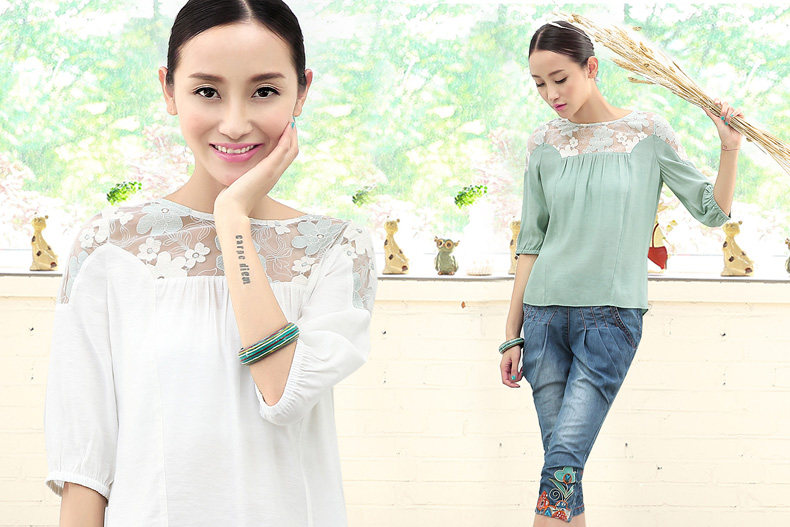 干净的抹茶绿带来内心的清凉,肩部拼接绣花网布,唯美的透视效果,更清爽透气。落肩袖和直筒版型都是不挑剔身材的设计,闷热的夏天姑娘们一定要人手一件。
