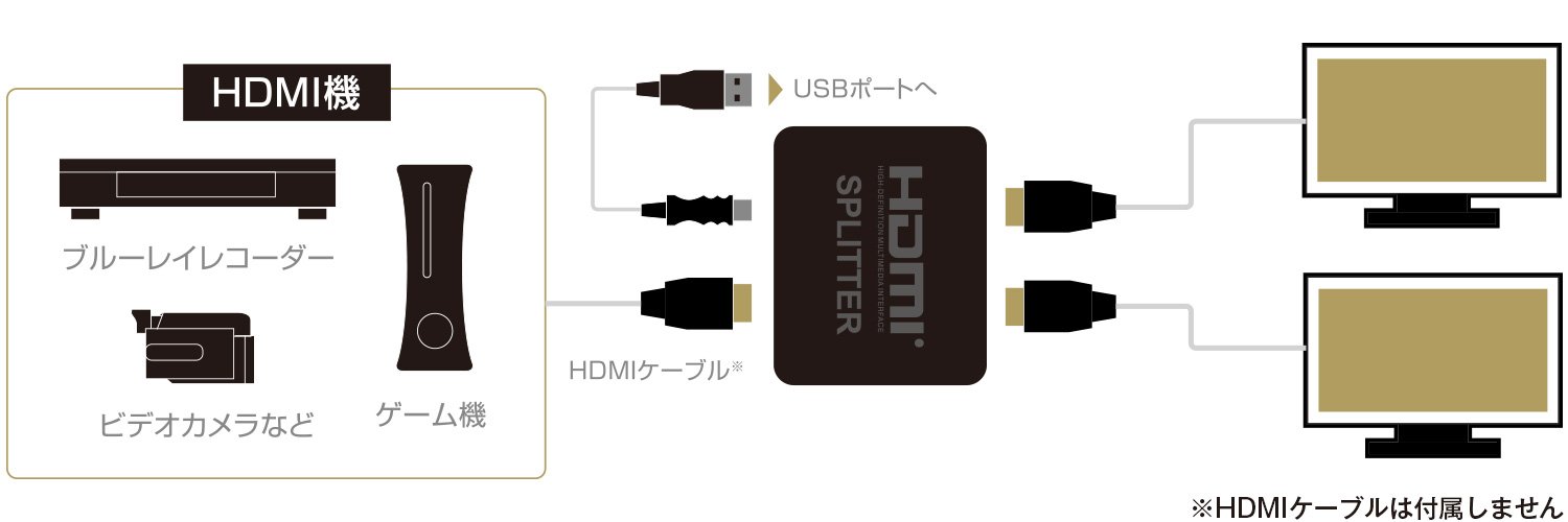 Images of HDMI equipment such as PCs, recorders, game machines etc. are simultaneously displayed on two televisions.