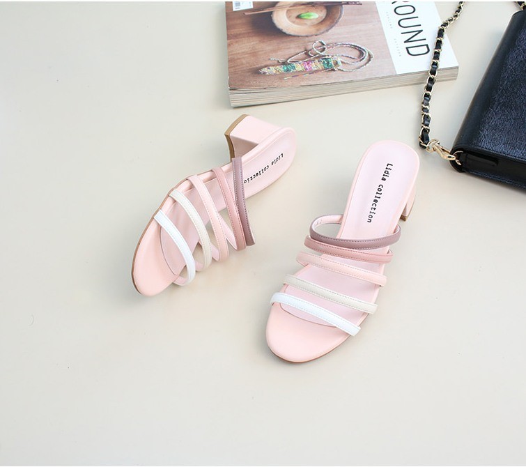 商品名:サンダル レディース ミュール 太ヒール チャンキーヒール 2018 夏 ファッション 靴 婦人靴