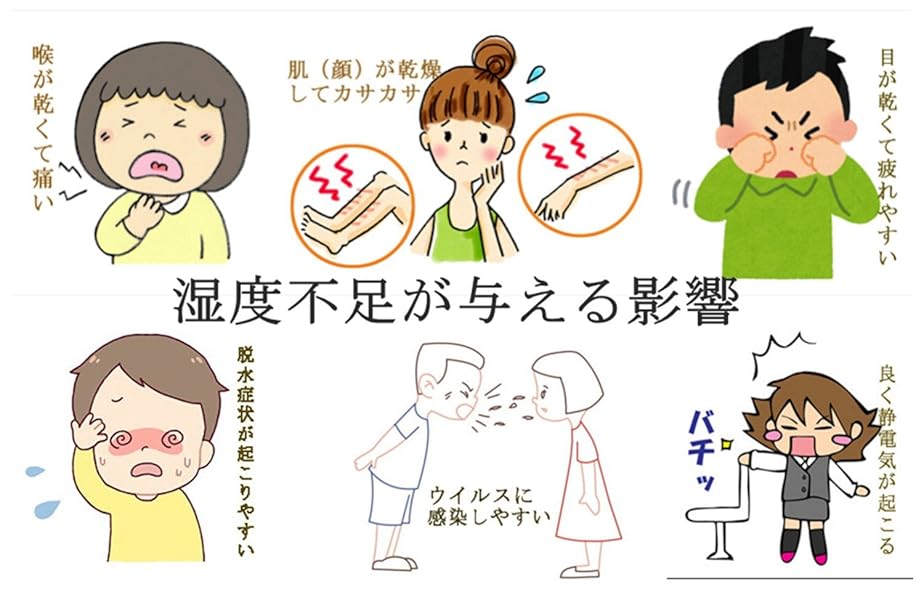 空気が乾燥すると肌、喉や鼻が乾き、健康に悪影響を与える。室内を快適な環境にするのは大切なのです。