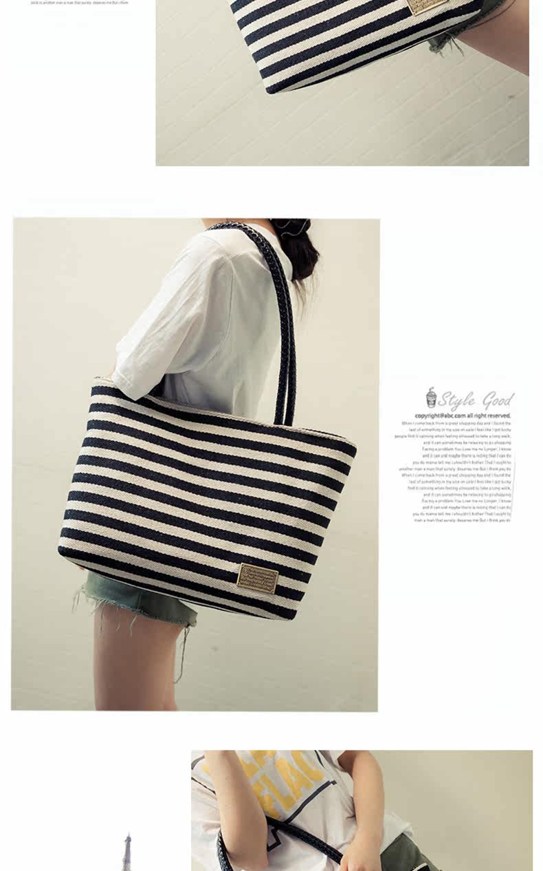 夏新款撞色条纹帆布单肩手提大包包韩版潮流托特包女