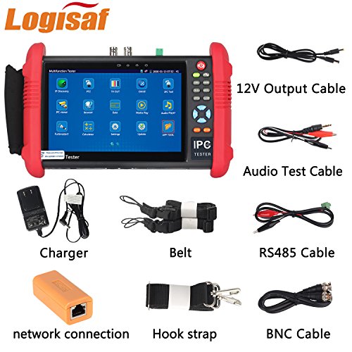 Logisaf 7 Inch CCTV Tester Monitor for Analog and Ip Camera, IPS Touch Screen IP Camera Test CVBS Analog Tester with 8G TF Card HDMI Out