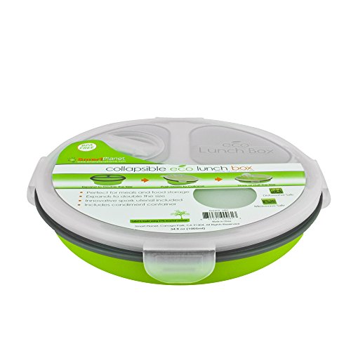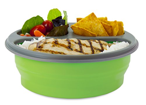 Smart Planet EC-34R3 Round 3-Compartment Collapsible Silicone Eco Meal Kit on The Go with Spork, Green