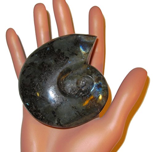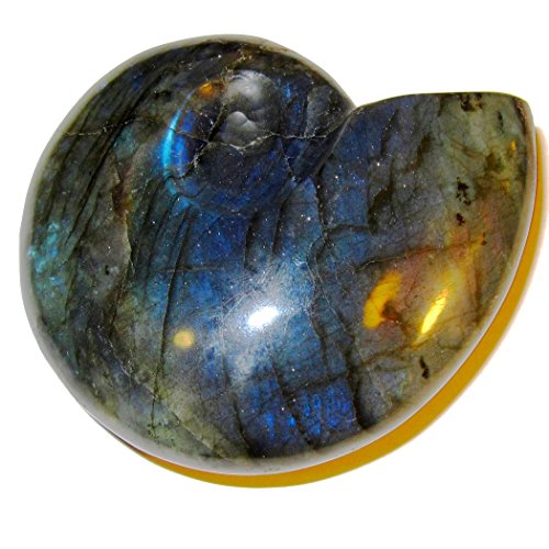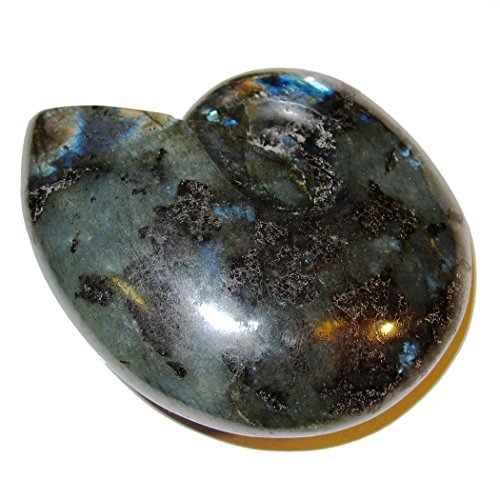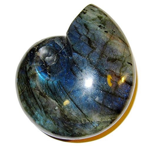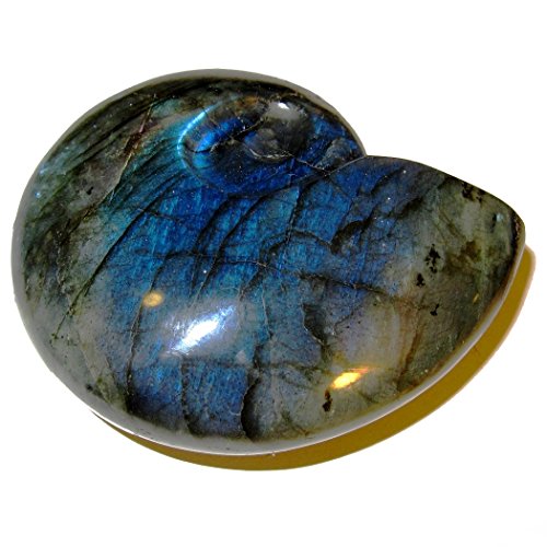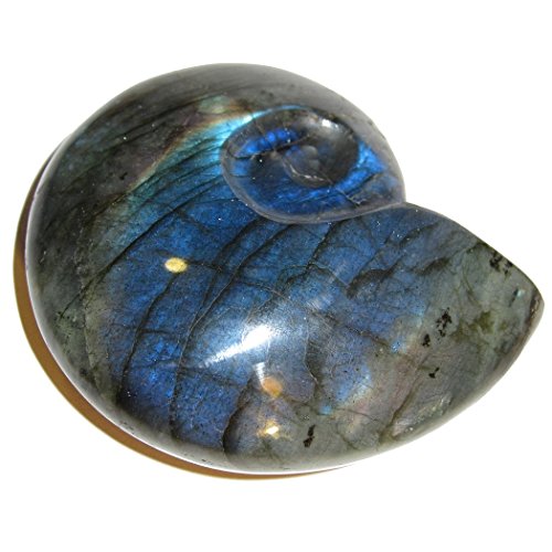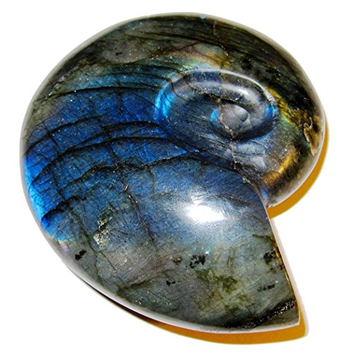 Labradorite Polished Stone 01 Super Blue Rainbow Beauty Shell Snail Carving Positive Energy Crystal 3.5"