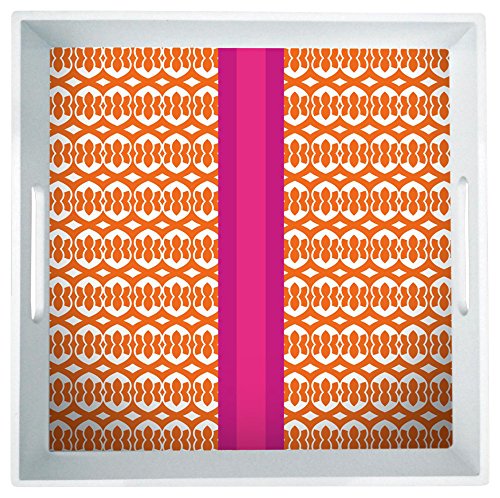 - Margot square tray; a stylish design in orange and white with pink accents