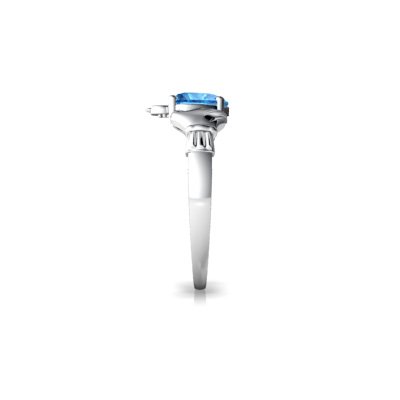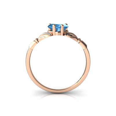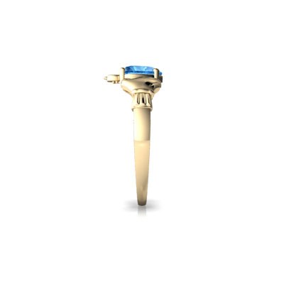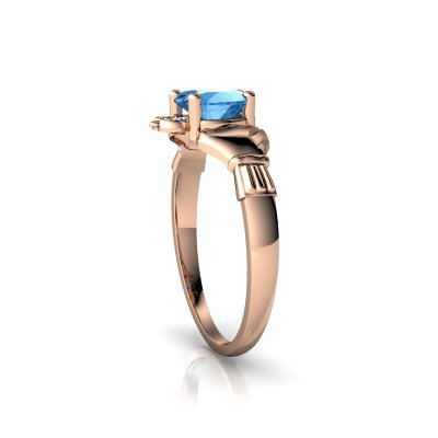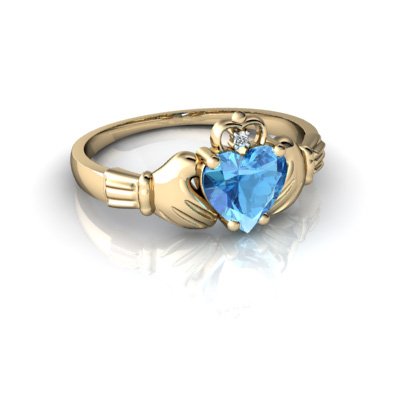 -. Title : 14kt Gold Blue Topaz and Diamond 6mm Heart Claddagh Ring