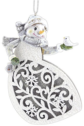 Roman 4.5" Glittered MDF Wood Snowflake Snowman & Bird Ornament