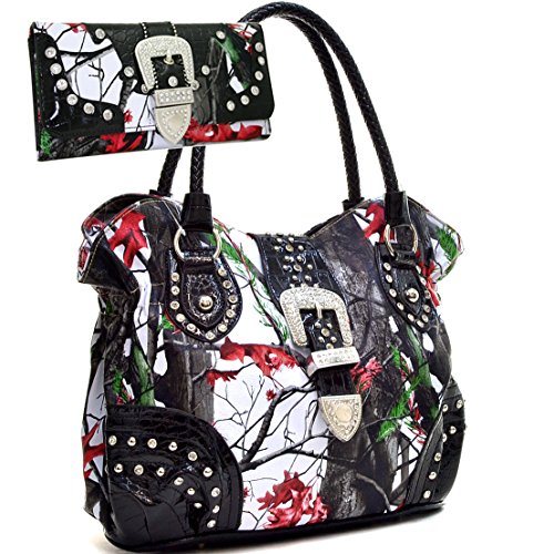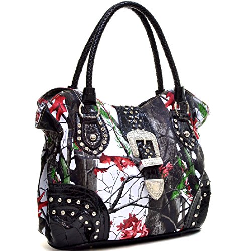 Western Camo Print Rhinestone Buckle Purse Handbag