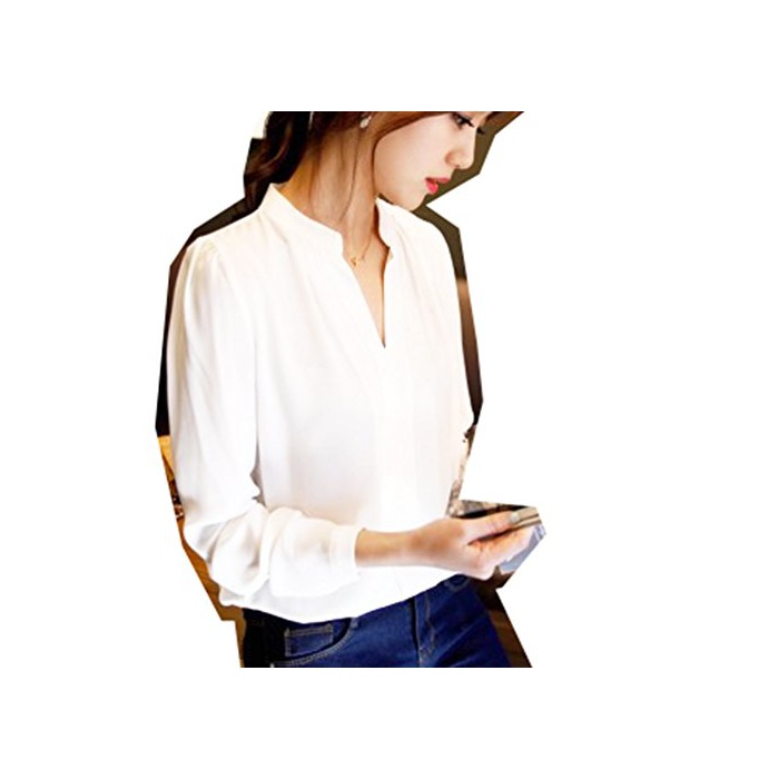 Dream Springs (드림 스프링《스》)DreamSprings2색에 선택가능 컬러 예쁜 노 컬러 셔츠 블라우스 v넥 잡 보 원단 레이디스 오피스 일 엘레강트 (pullover