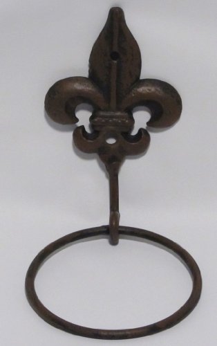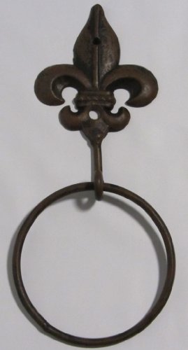 Cast Iron Fleur De Lis Towel Ring Metal Rustic Brown